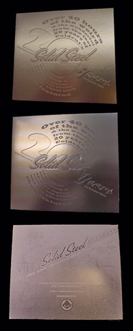 having been the man behind some fantastic special one off projects (eg. the robot themed mixtape that came in a transformer shaped carboard sleeve, the output records mixtapes), he along with ninja tune, have decided to celebrate the 20th anniversary of their massively popular and influential cut-n-paste internet radio broadcasts solid steel, with a rather wonderful hard copy archive to be packaged in a very shiny silver embossed cover as pictured above.